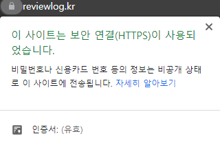 이후 nginx 서비스를 재시작하여 확인하면, 보안인증서가 설치되어 HTTPS로 연결된 것을 확인할 수 있다.