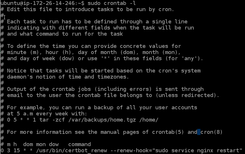 따라서, 여기서 linux crontab 명령을 이용하여 인증서 자동갱신까지 해주도록 하자.