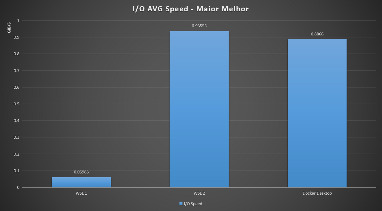 WSL1에서 WSL2 대비 I/O 퍼포먼스가 20x 성능개선되었으며 Sequential write 등 성능면에서 훨씬 앞서는 모습을 보여준다. (* I/O 퍼포먼스 비교글 참고)