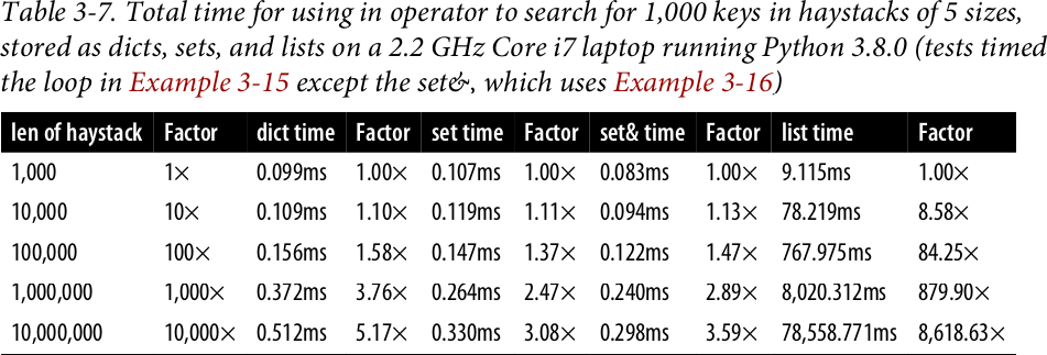 실험결과는 fluentpython.com의 아래 테이블을 참조하였다.