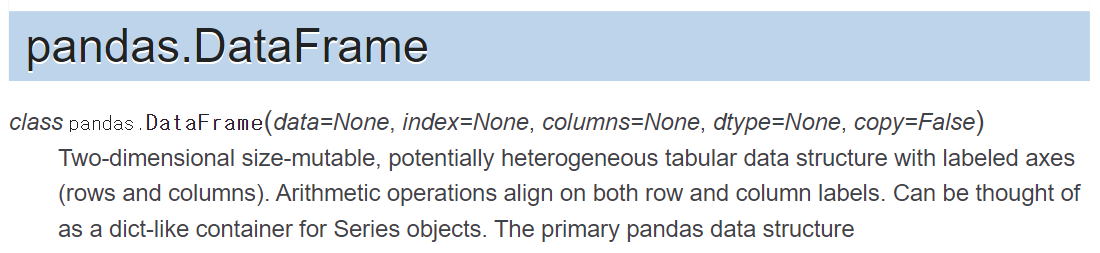 Pandas 공식문서의 DataFrame 정의(pandas.pydata.org/pandas-docs)