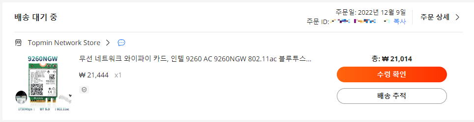 나는 Aliexpress에서 인텔 9260 랜카드 구매하였고, 자가교체한 후기를 작성해보려고 한다.