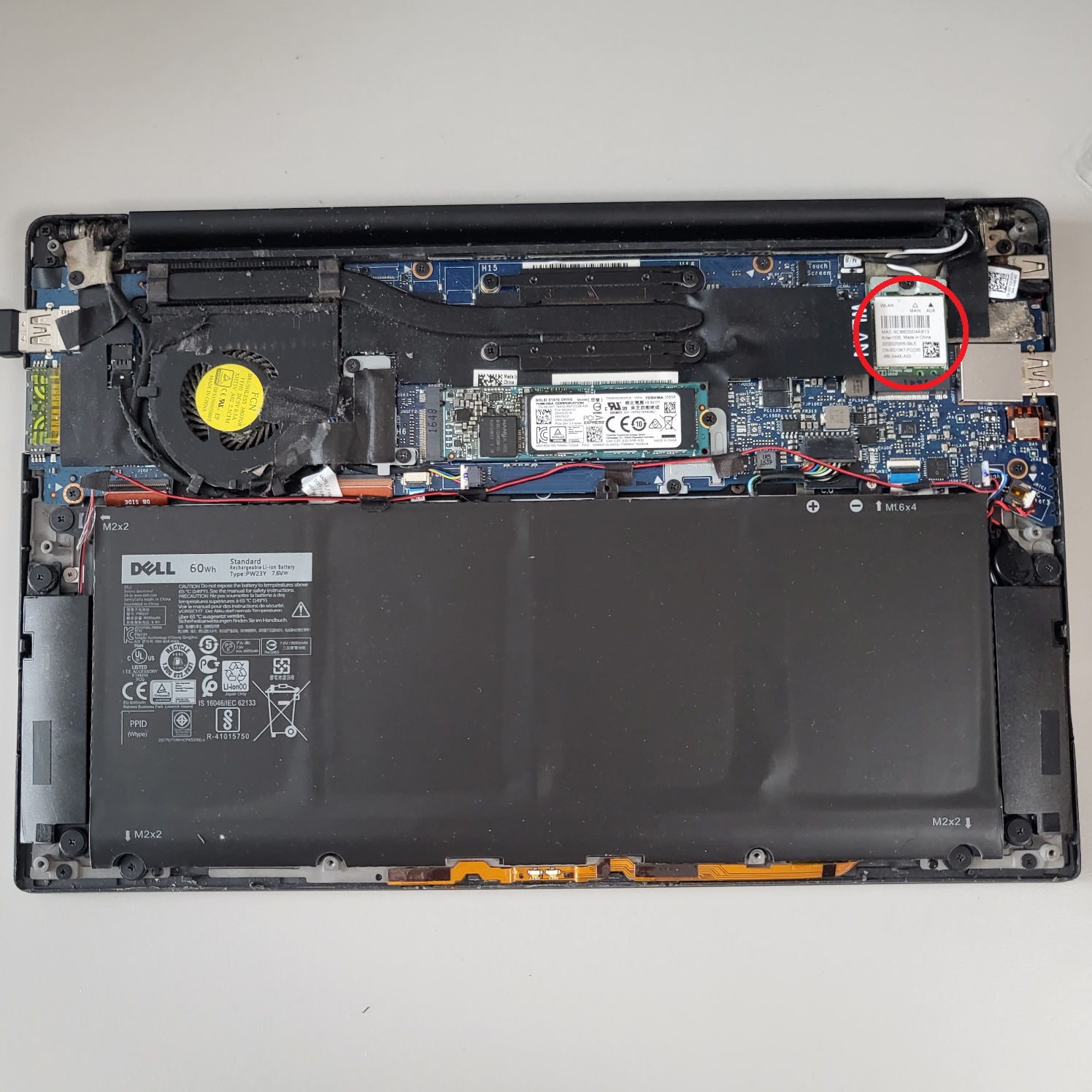 후면 케이스를 뜯으면 우측 상단에 빨간색 동그라미를 친 부분이 교체할 랜카드가 있는 위치이다.