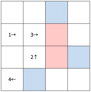 4. 각 말들은 이동방향이 정해져있고, 각 턴마다 해당 방향으로 한칸씩 이동