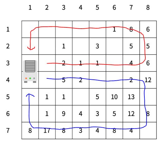 1. R * C 칸의 방에 미세먼지 양 정보가 주어짐