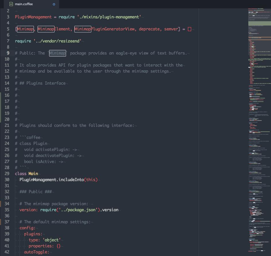 minimap은 코드의 전체와 현재의 위치를 미니맵으로 보여주는 플러그인이다. 원래는 sublime에서 지원되던 기능인데 현재는 여러 에디터들이 이 기능을 탑재하고 있다. 개인적으로 상당히 만족하여 사용한 기능 중 하나.