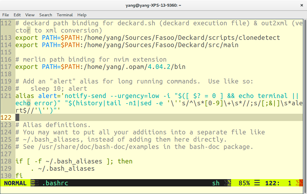 위와 같이 환경변수 PATH에 등록할 바이너리가 있는 경로를 넣어주면 된다. 또한 배쉬 셸을 킬 때마다 환경변수 PATH를 추가하도록 .bashrc에 등록할수도 있다. 나의 경우 Deckard와 Merlin의 경로가 추가되어 있다.