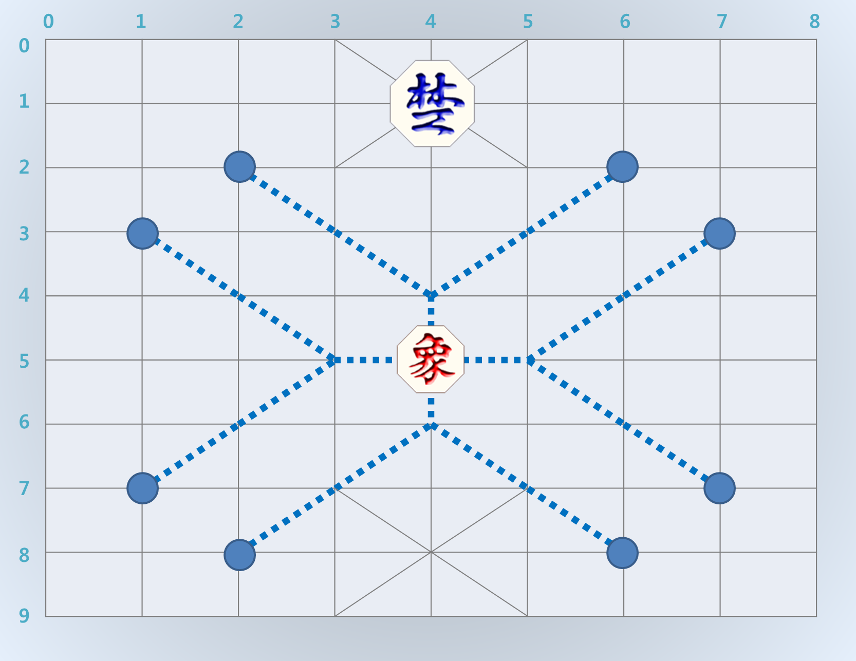 2. 장기게임에서의 상의 이동은 아래와 같이 8방향으로 가능함