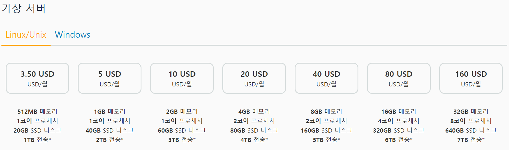 보통 개인 개발블로그의 경우 비즈니스 페이지에 비해 트래픽이나 메모리 사용률이 그렇게 크지 않기 때문에 가장 저렴한 것을 사용한다.