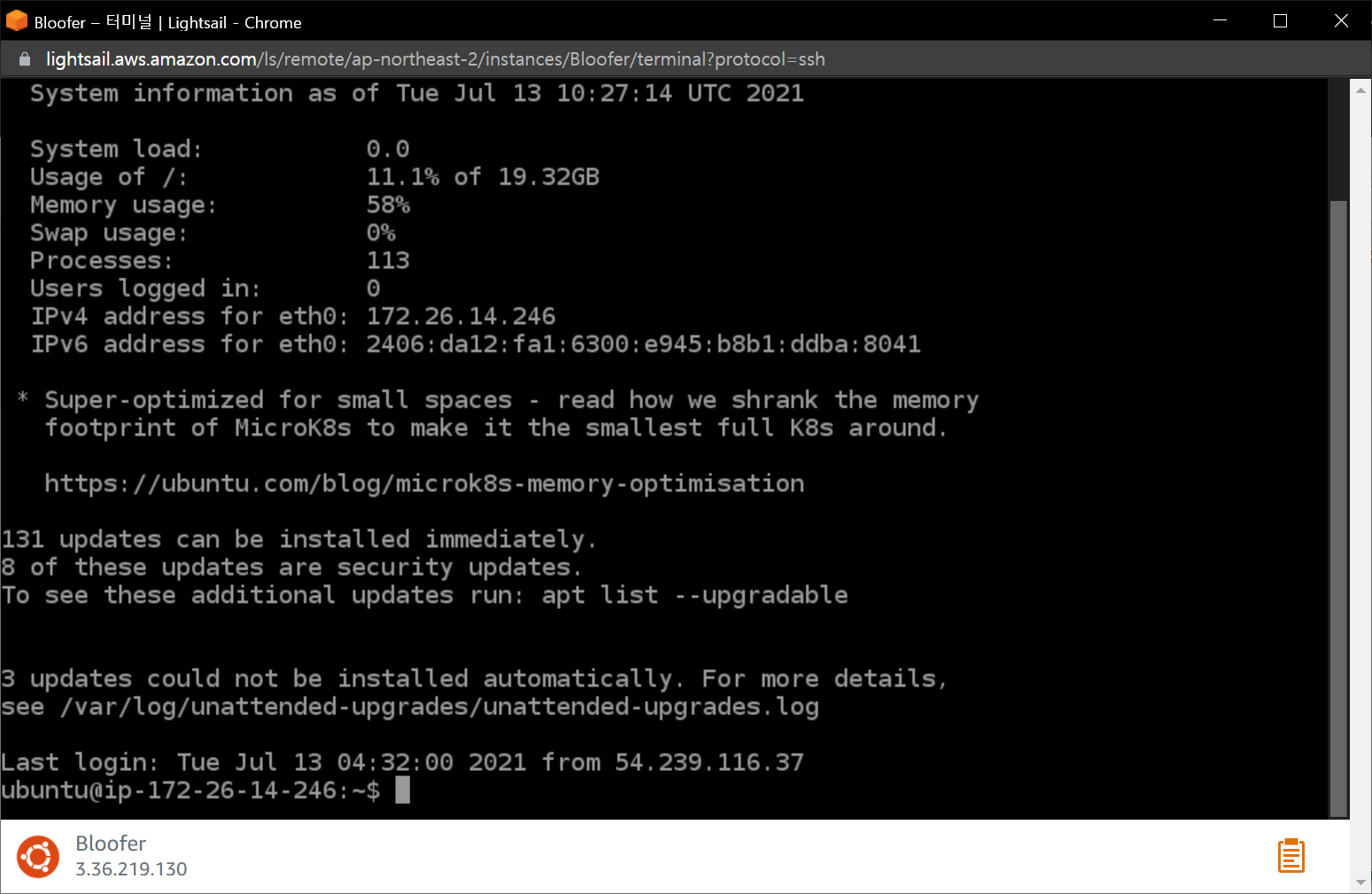 아마존 Lightsail은 웹페이지를 이용한 SSH를 지원하는데, 개발환경 세팅되지 않은 원격환경에서 유용하게 사용할 수 있을 것 같다.